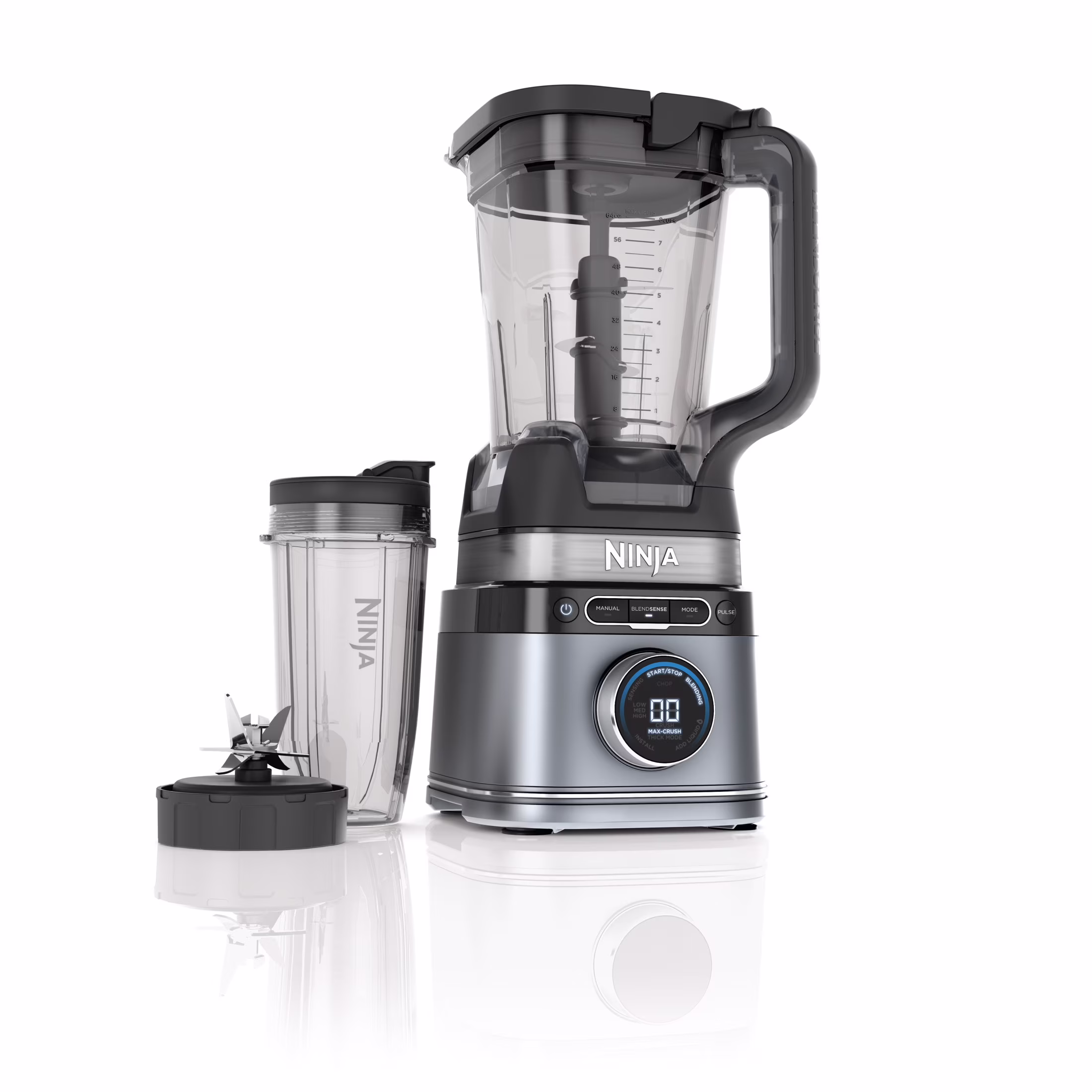 Ninja Detect Duo Power Blender + Personal Single-Serve, BlendSense Technology, Kitchen Countertop, 1700 Watts, 72 oz Pitcher, 24 oz Cup, TB300 Silver