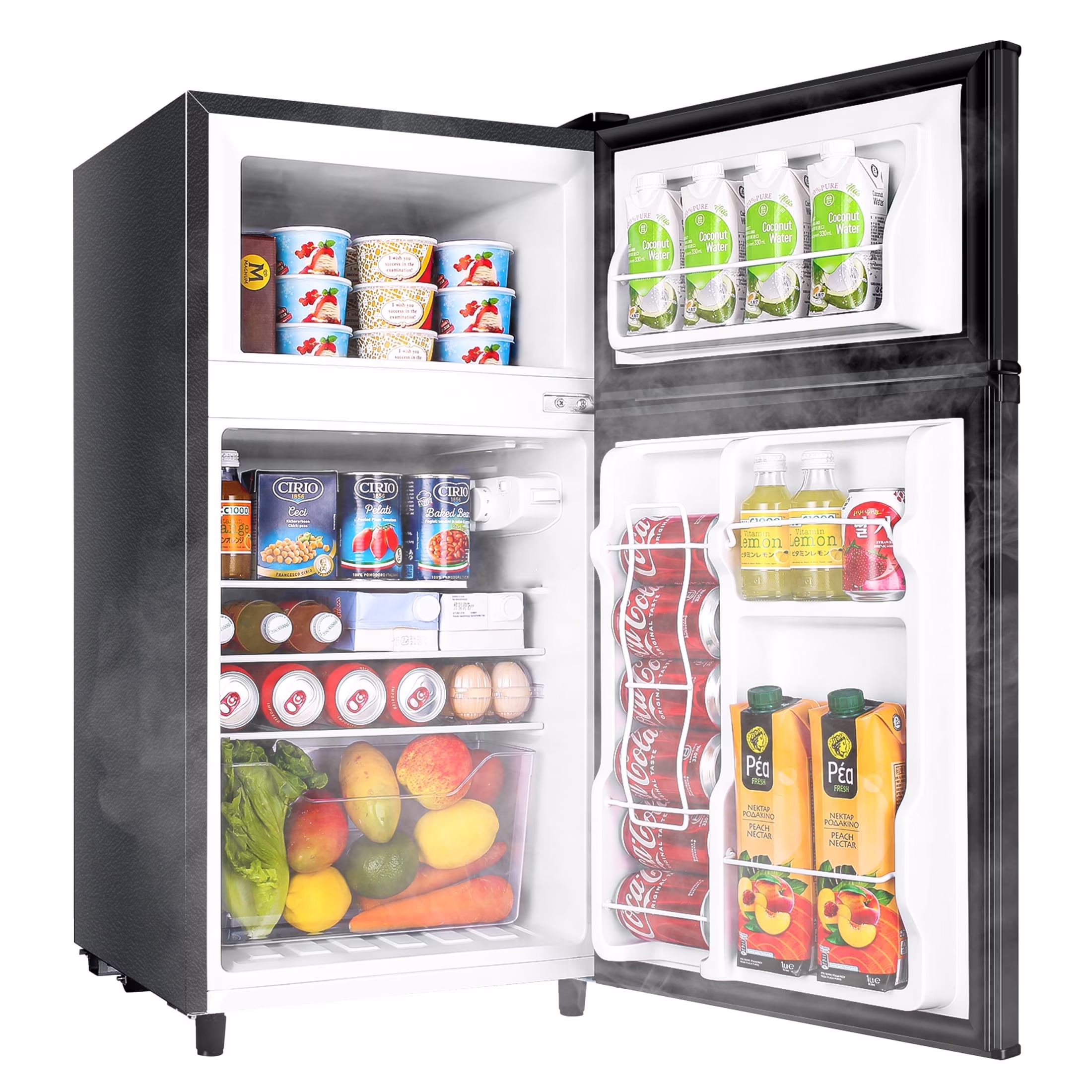 WANAI Two Door Mini Fridge with Freezer, 3.5 Cu ft Small Freezer ,Dark Grey