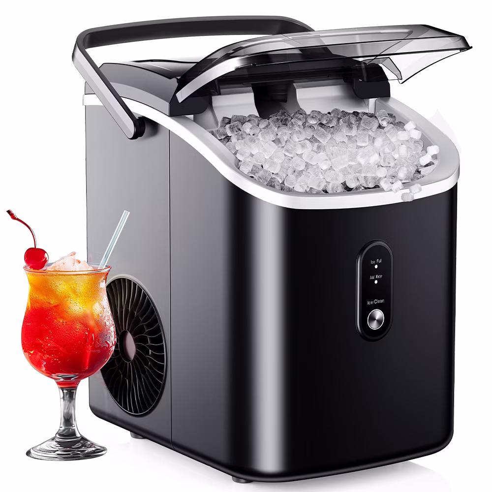 EUHOMY Nugget Ice Maker Countertop with Handle, Ready in 6 Mins, 34.5 lbs Per Day, Removable Top Cover, Auto-Cleaning, Black