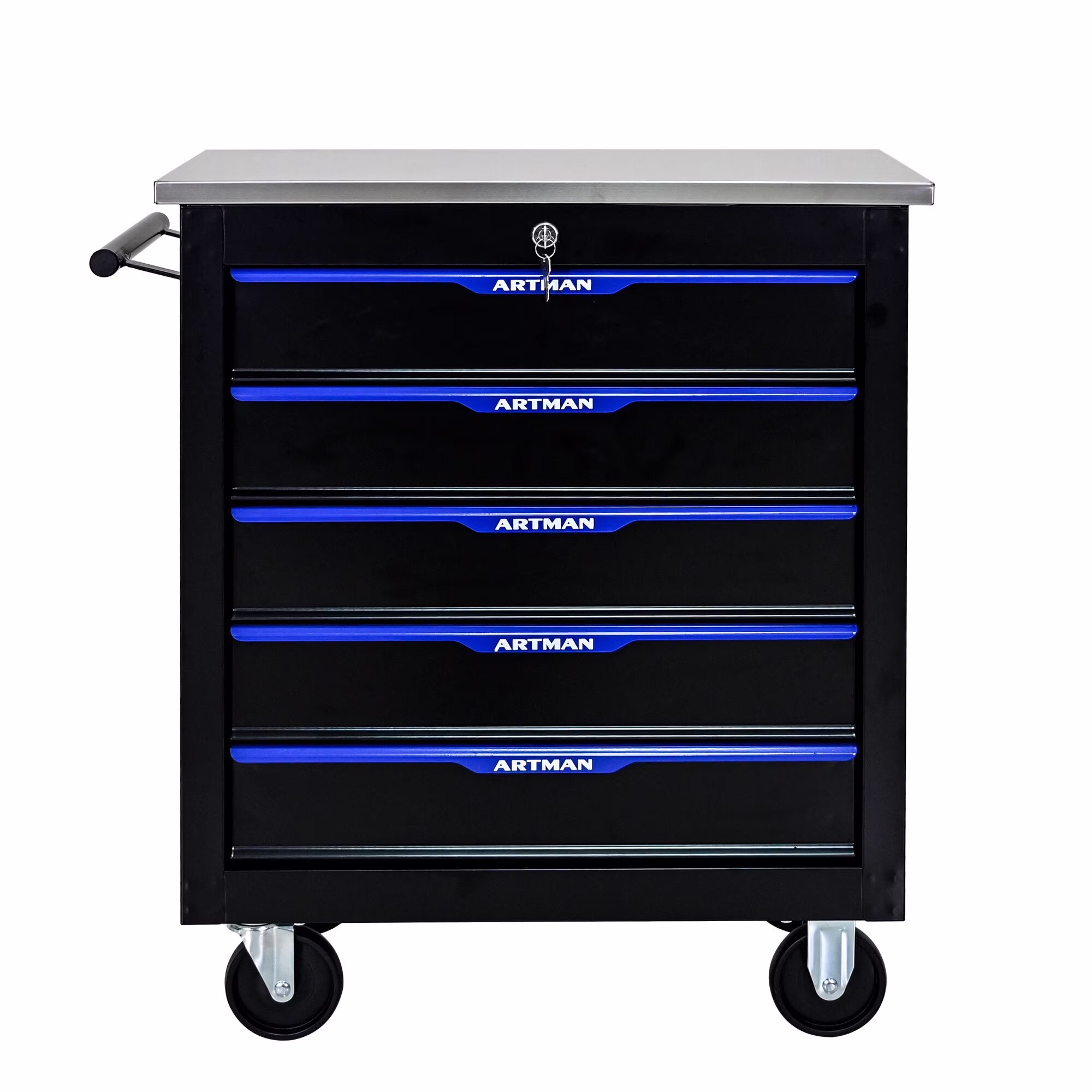 DUOSONG 5 Drawers Multifunctional Tool Cart With Wheels-Black+Blue Black+Blue Metal Tools & Tool Organizers Tool Cabinets
