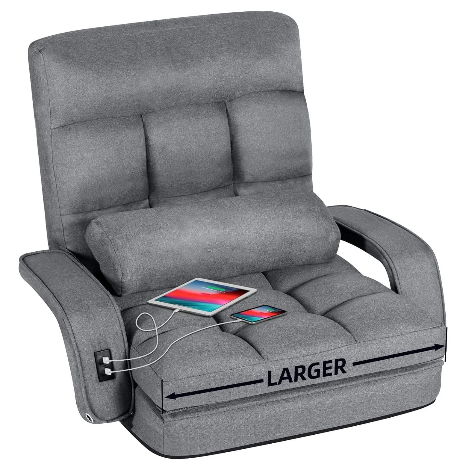 QUIRhait Comfy Floor Chair Bedroom 2 USB Charging Ports, 5-Position Floor Couch Gaming Chairs Adults, Lounge Chair Indoor Folding Floor Lazy Sofa Meditation Arm Dorm Chair Living Room (Grey)