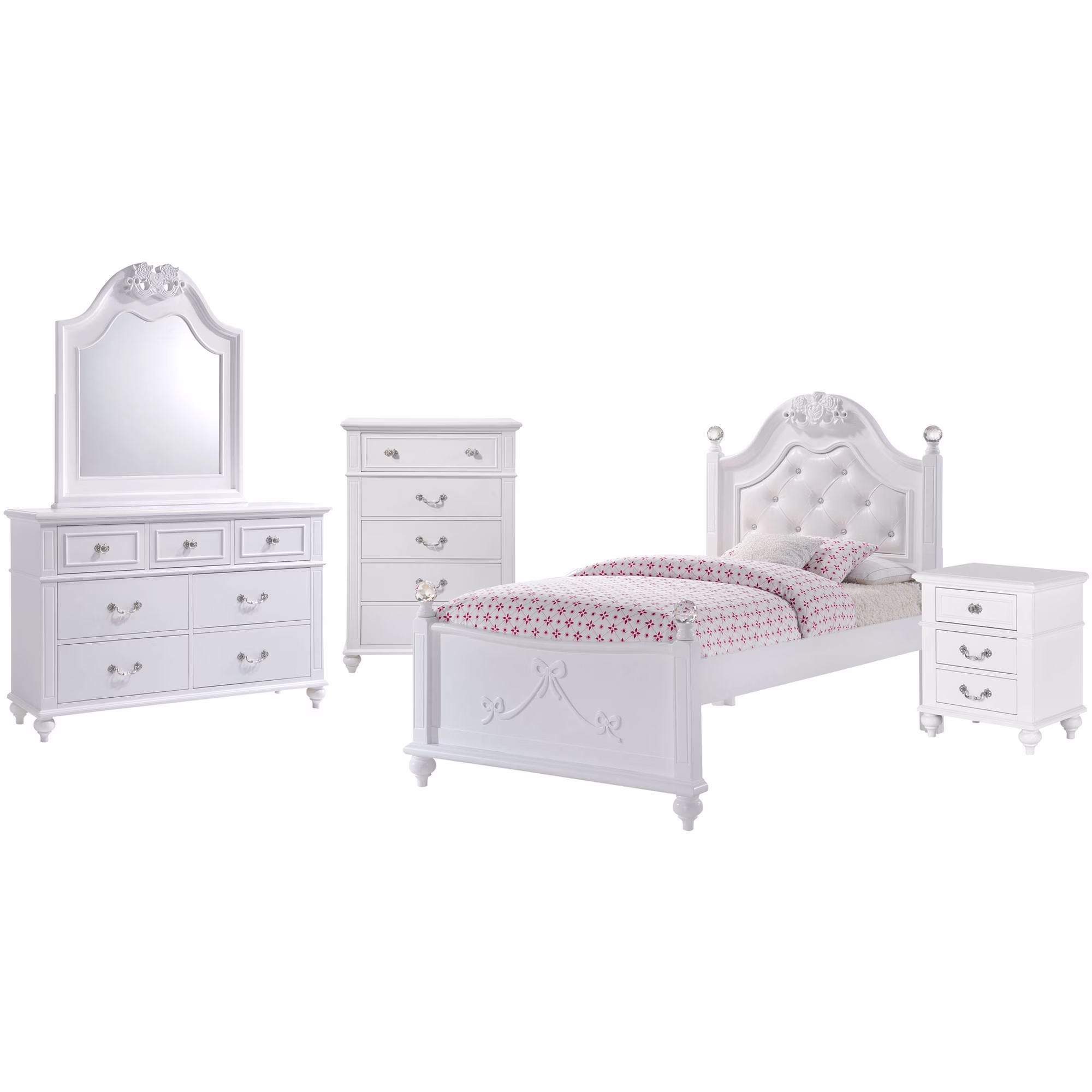 Picket House Furnishings Annie Collection 5-Piece Kids Upholstered Twin Bedroom Set, White