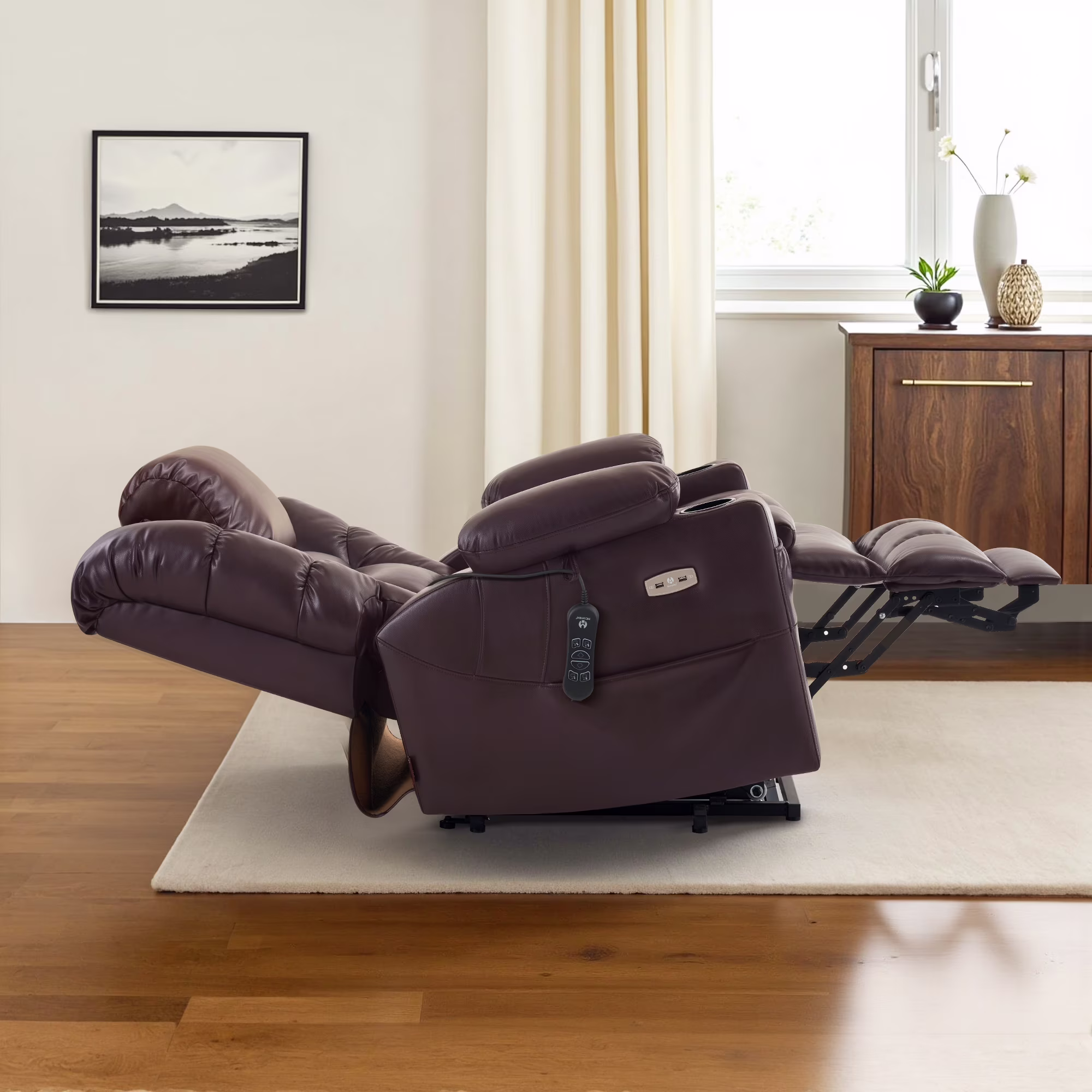 MCombo Triple Motor Power Lift Recliner for Elderly, Sleep Recliner Sofa with Adjustable Headrest, Faux Leather, Dark Brown
