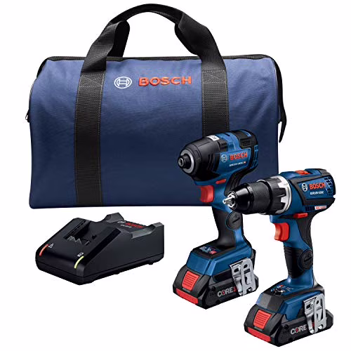 BOSCH GXL18V-238B25 18V 2-Tool Combo Kit with Connected-Ready 1/4 In. Hex Impact Driver, Connected-Ready Compact Tough 1/2 In. Drill/Driver and (2) CORE18V 4.0 Ah Batteries