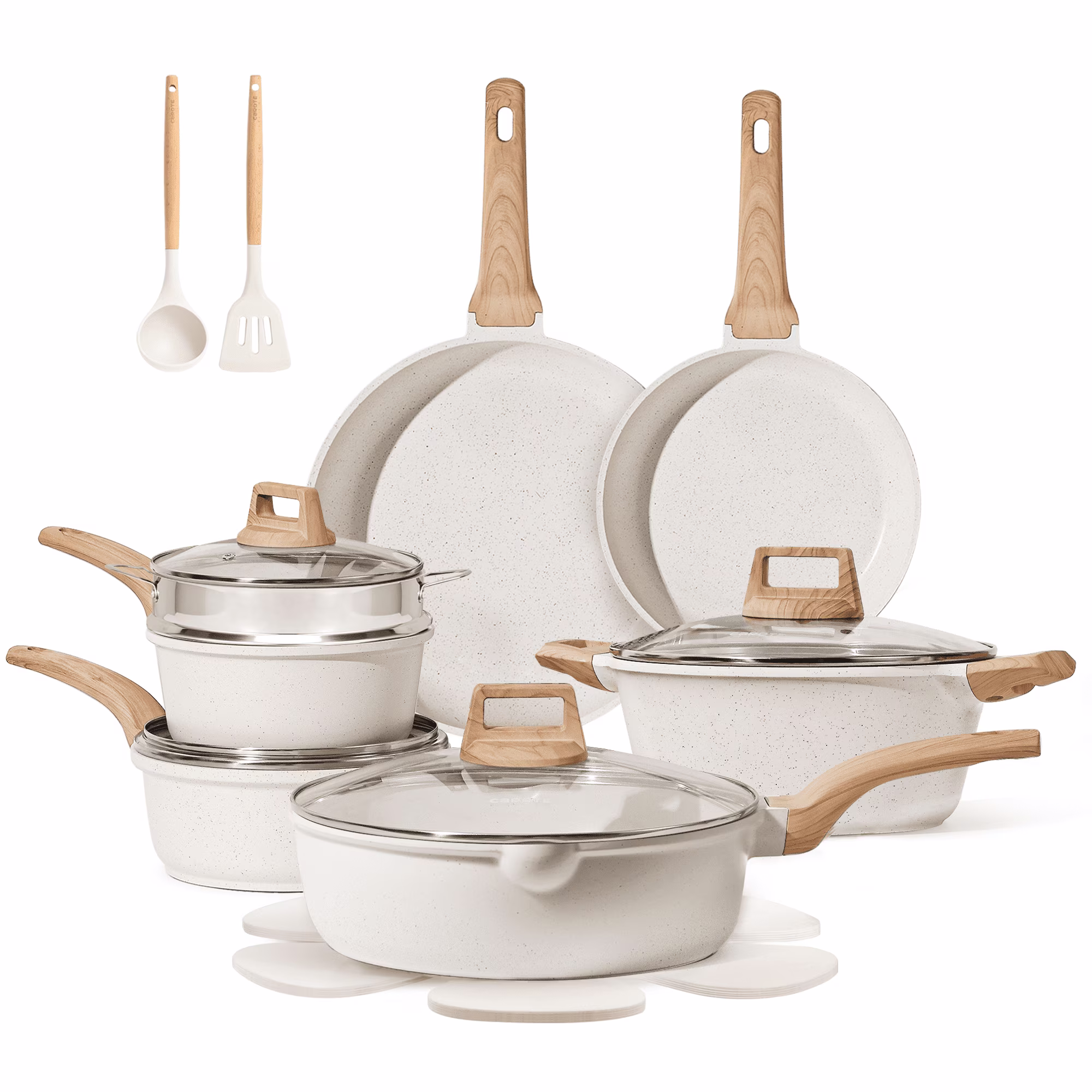 Carote Nonstick Pots and Pans Set, 18 Pcs Granite Kitchen Cookware Sets (White)