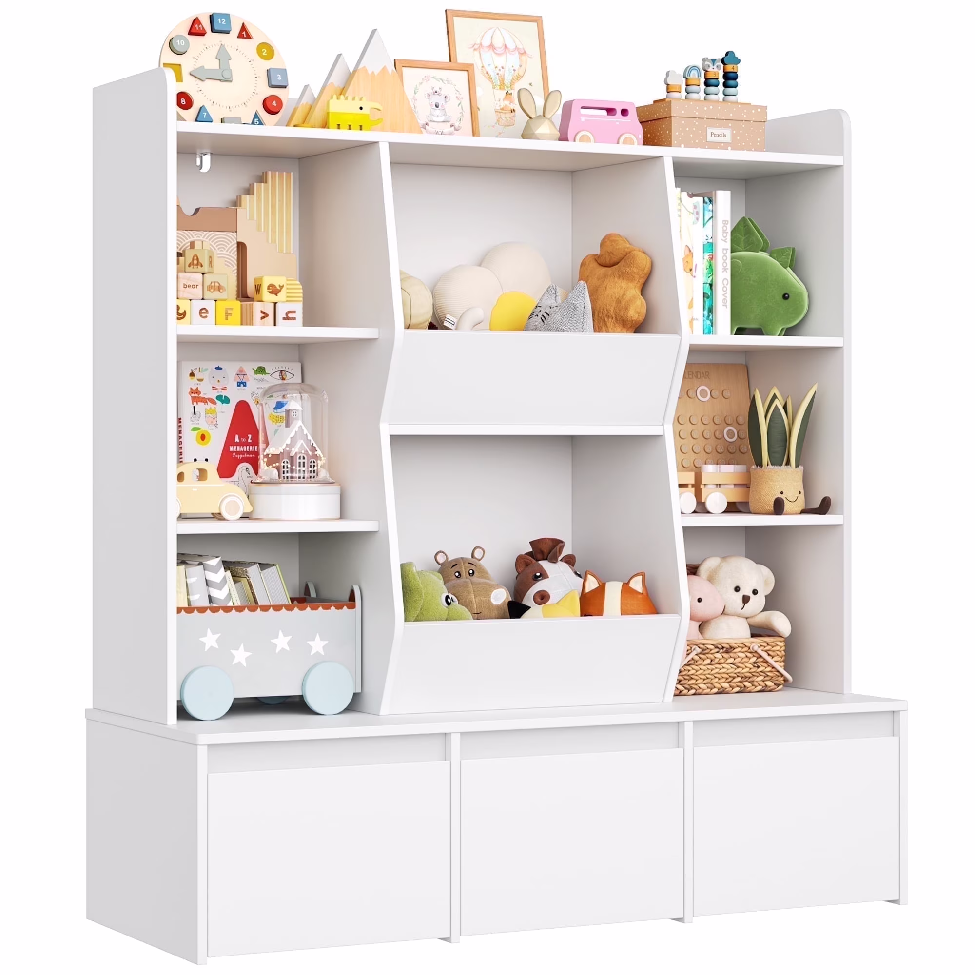 Hiphuta Large Toy Storage Organizer with 4 Shelves, 8 Cube Storage Kids Bookcase for Playroom, Toy Organizer for Kids, White