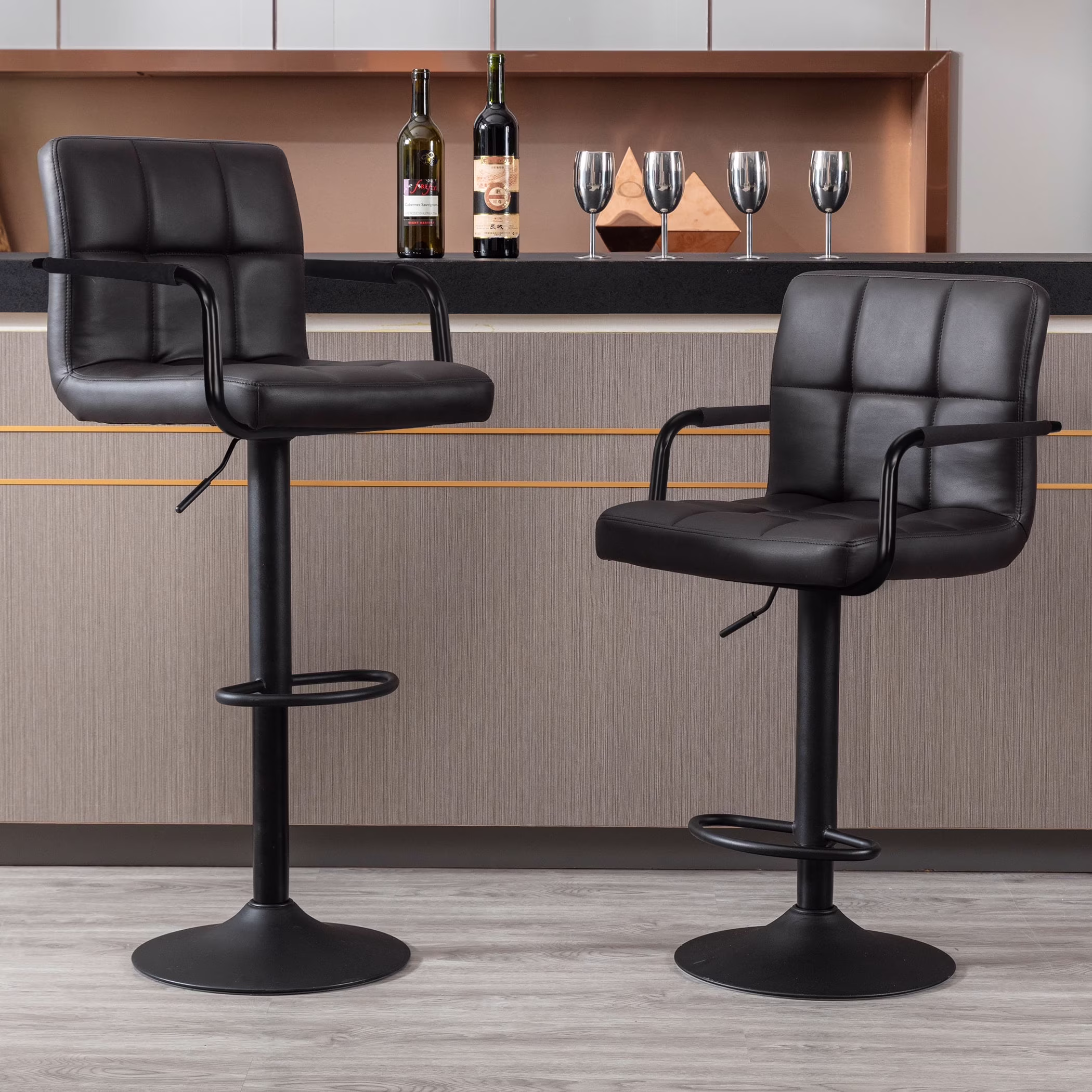 JONPONY Bar Stools Set of 2, Back and Armrest,Vintage Leather Modern Bar Chairs for Home and Kitchen Counter,Black,Low Back