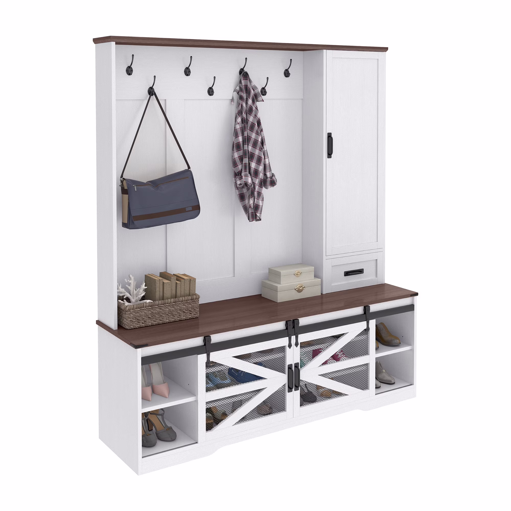 Craftian Hall Tree with Coat Rack, Shoe Storage Bench, Farmhouse Entryway Storage Organizer