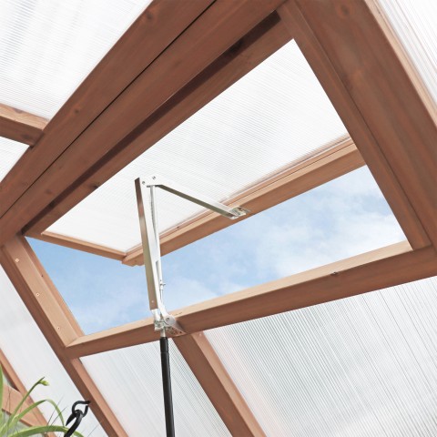 Heat sensitive. automatic roof vent opener maintains temperature and humidity. Cedar door includes door latch and closer with quick-hold feature to keep door open.